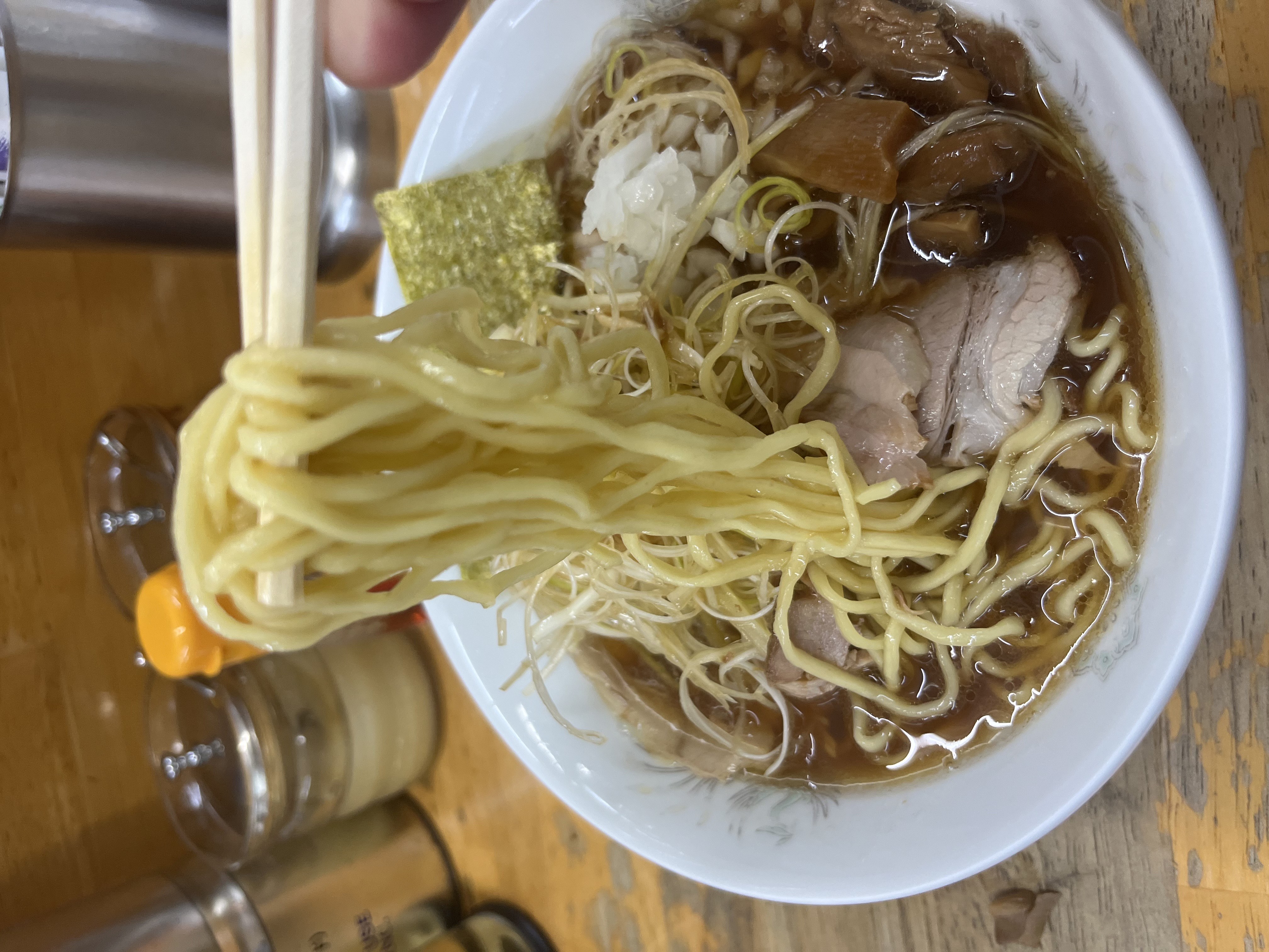 柔らかく煮込まれたチャーシューや、程よい食感を残したメンマ、王道ながら丁寧に仕上げられ、刻み玉ねぎが程よいアクセントで効いています^^