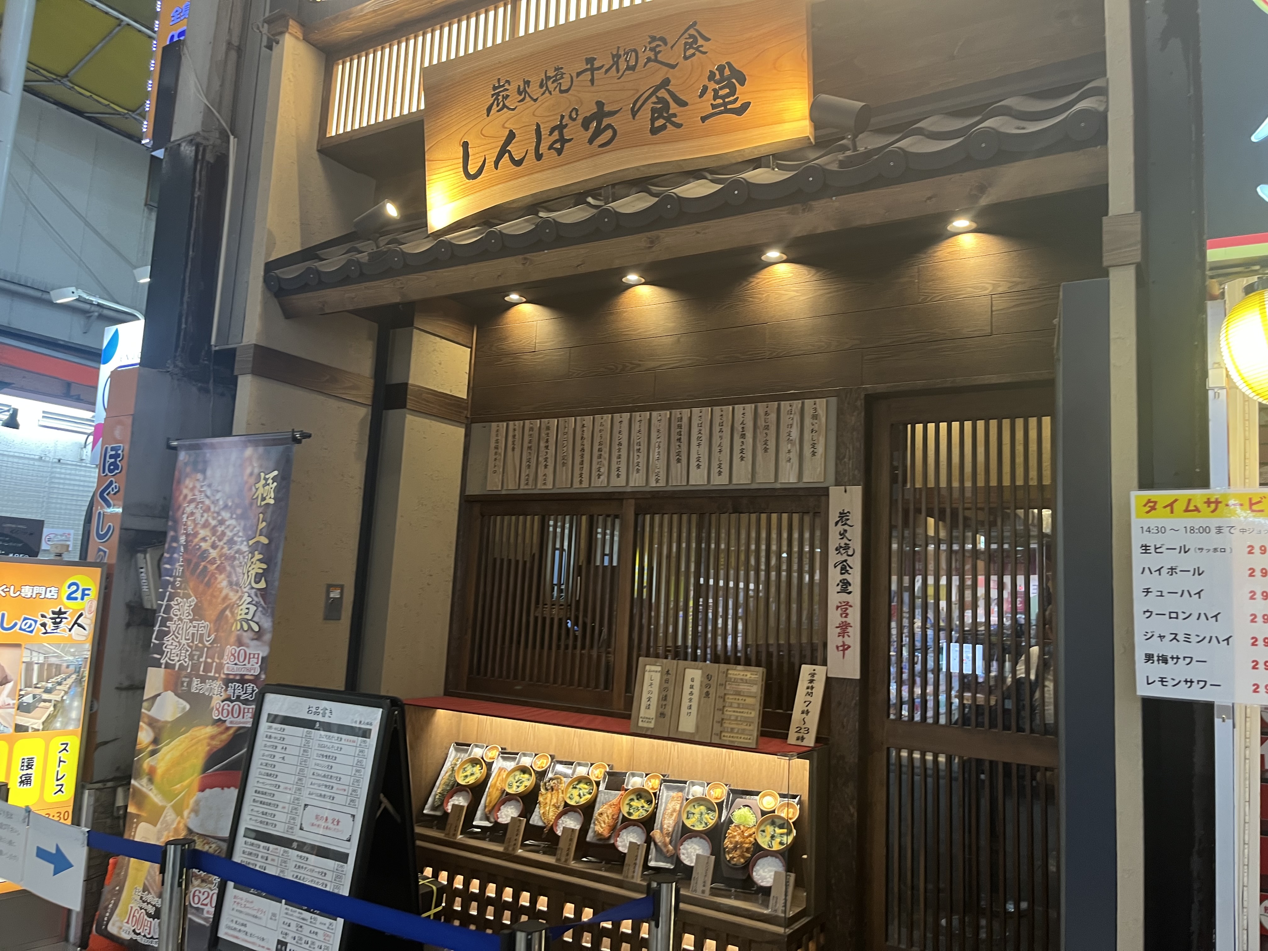 今日はチェーン店ですが、軽く一杯飲んで食事には最適なしんぱち食堂です。