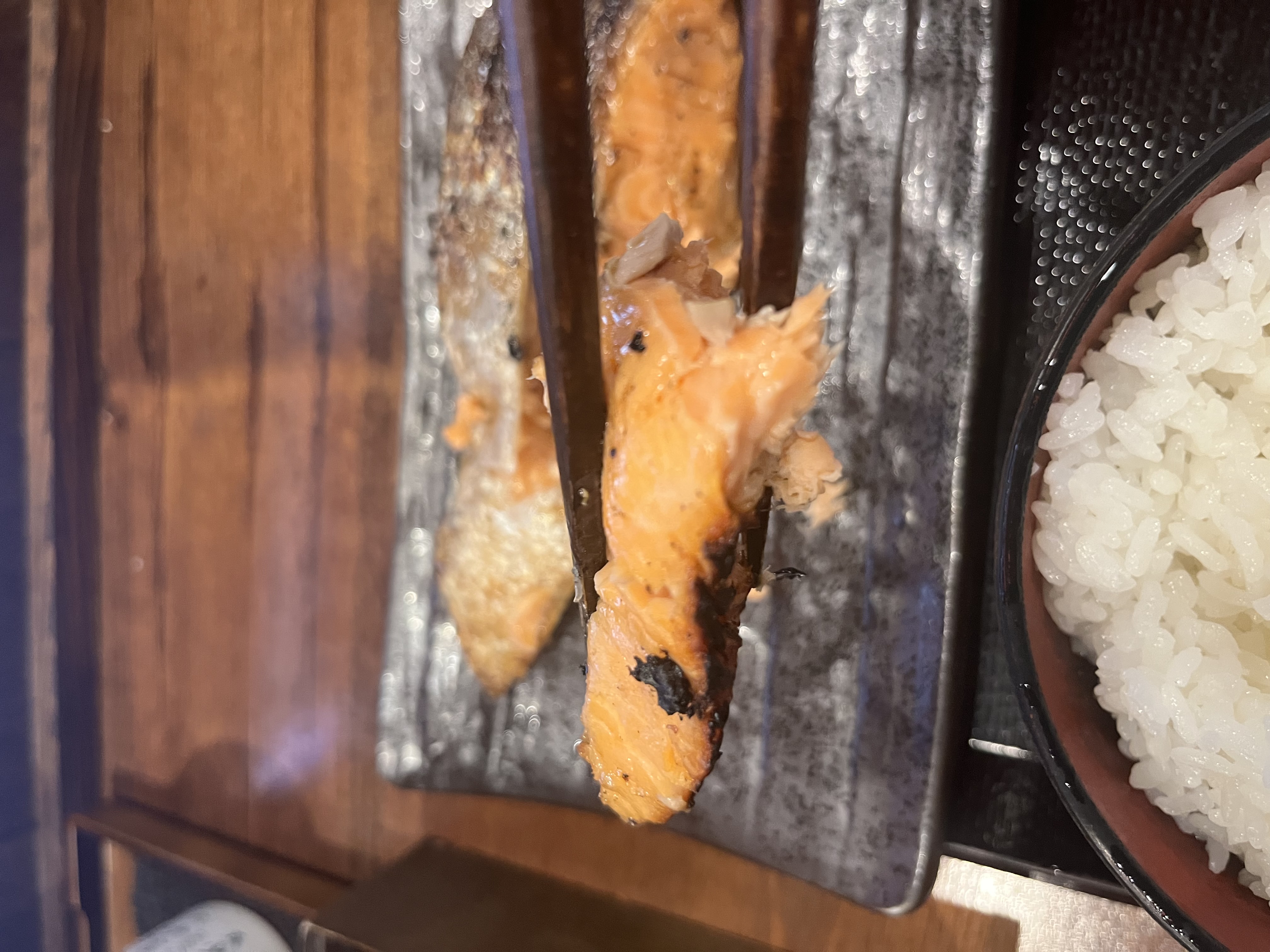 サーモンハラスはしっかり脂がのった逸品で、体にも良さそう。