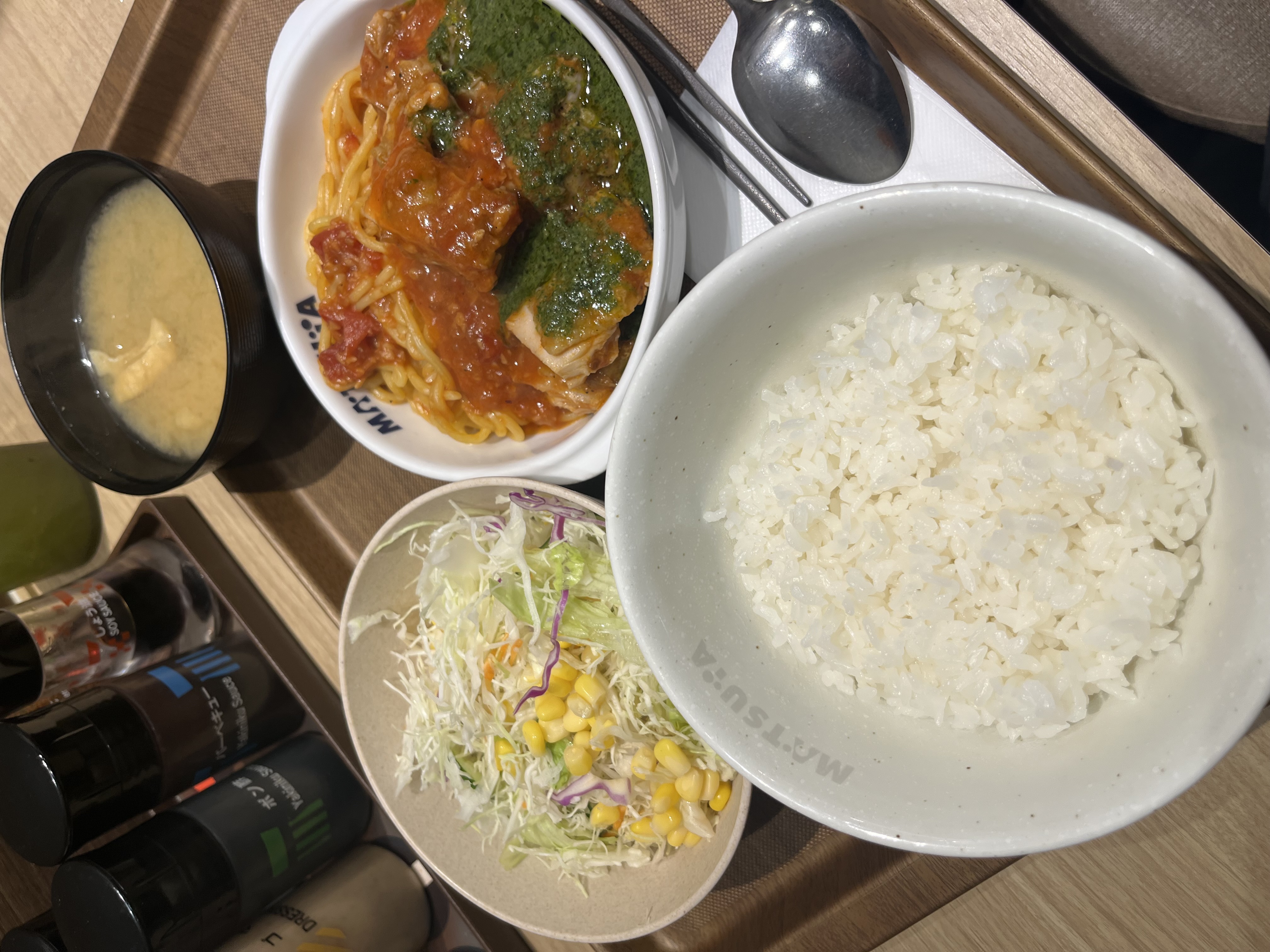 パスタは普通でも、チキン+ライスの組み合わせで満足度アップ。松屋の新しいチャレンジ、これはこれでアリです。