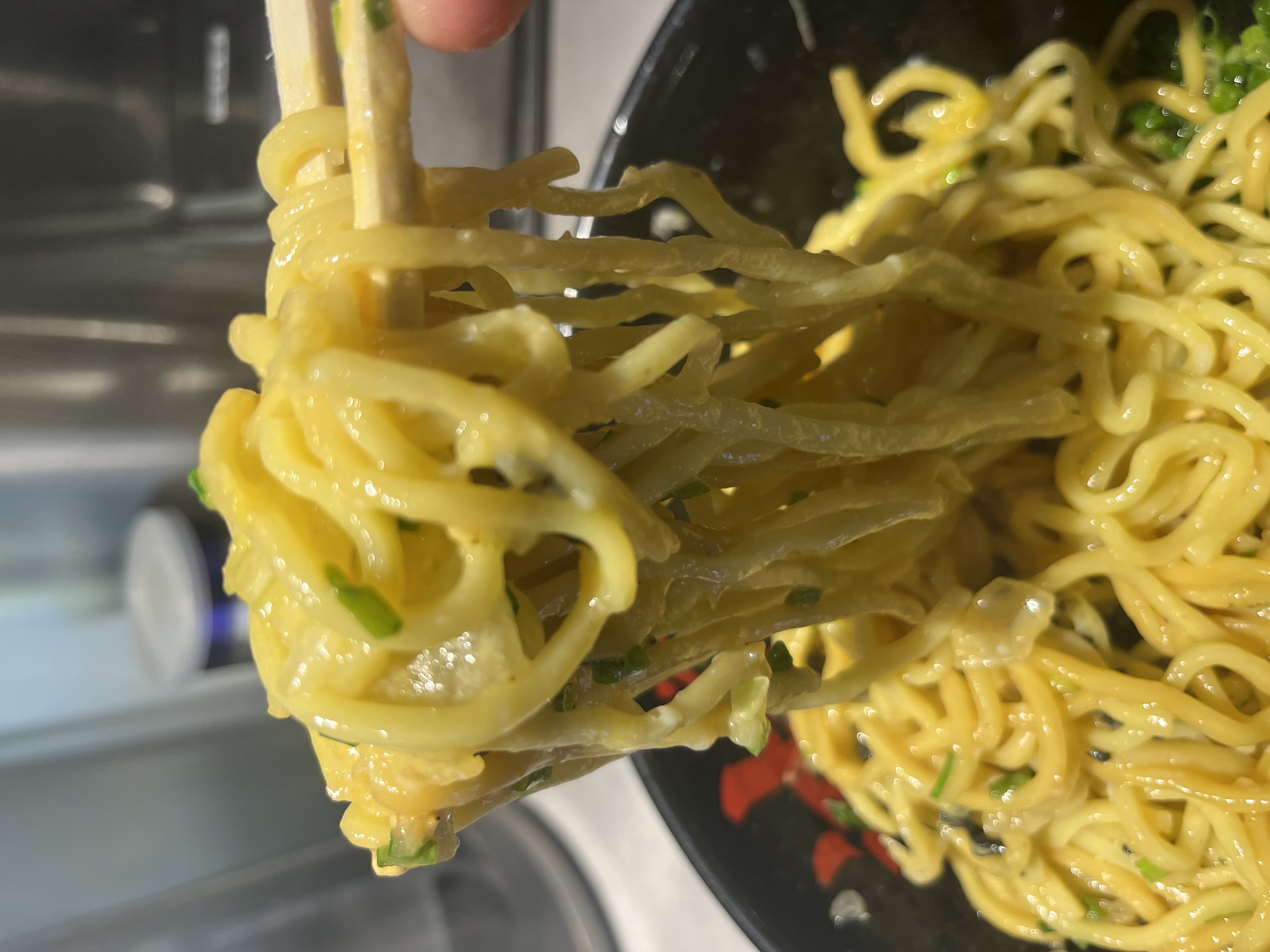 モチモチの中太麺に、秘伝の醤油ダレとごま油が絡み、香ばしい香りが立ちのぼる瞬間からもう勝負あり。
