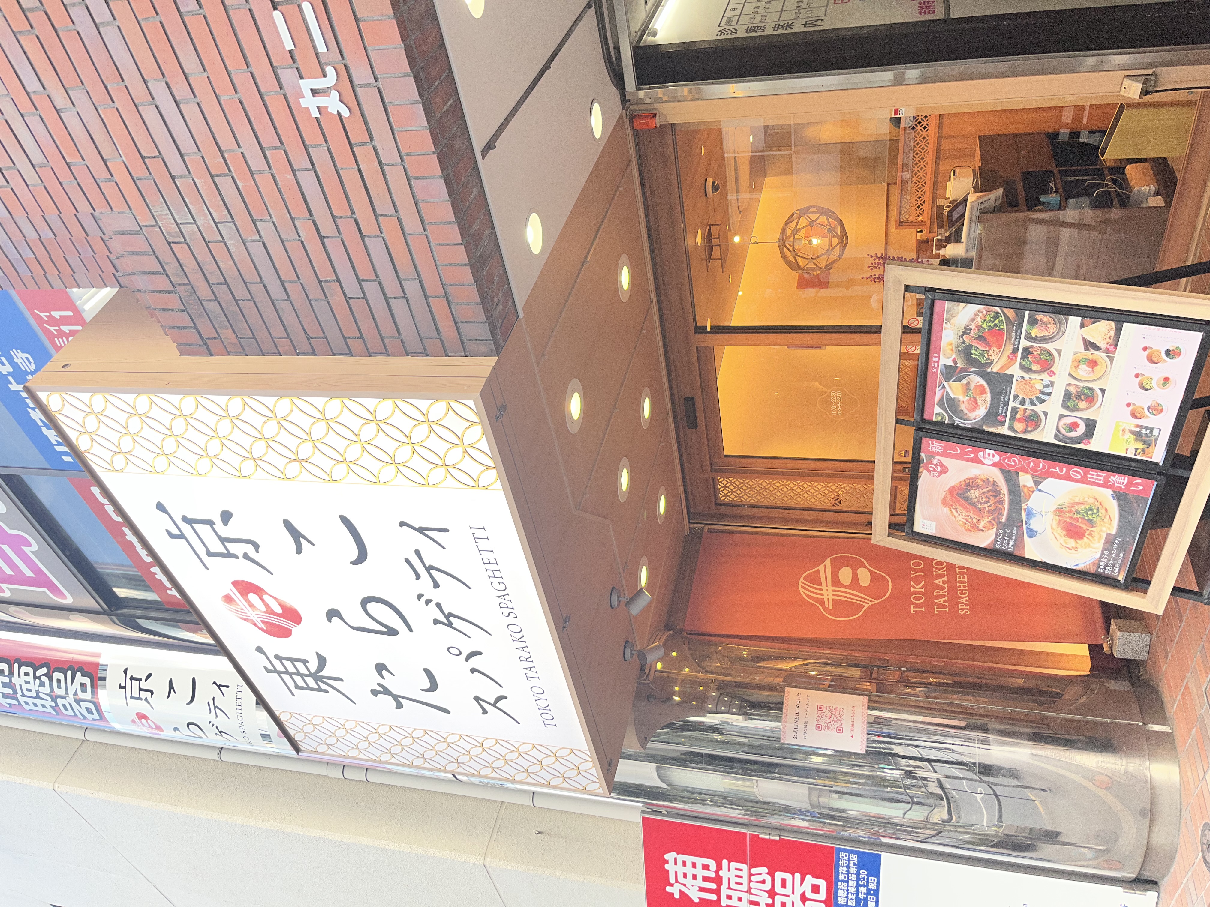 UNIQLOのある通りを右に曲がると、ほどなく見えてくるのが「東京たらこスパゲッティ 吉祥寺店」。駅からの距離も近く、買い物や散策の合間に立ち寄りやすい立地です。